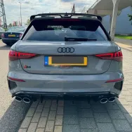 De Audi S3 Sportback Stage 2 met Milltek-downpipe is een waar prestatiewezen voor autoliefhebbers – een compacte krachtpatser met rauwe sound en scherpe respons. Dankzij de dure Milltek-downpipe en een Stage 2 tuning levert hij circa 350 pk en 500 Nm koppel, waarmee hij in zo’n 4,3 seconden van 0 naar 100 km/u accelereert. De combinatie van OPF-delete en pops & bangs zorgt voor een knallende uitlaatervaring die je niet snel vergeet.