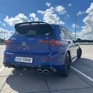 Het exterieur van de Golf 8R Performance is agressief en sportief, met een uniek design dat de aandacht trekt. De grotere luchtinlaten, bredere wielkasten en een opvallende achterspoiler dragen bij aan de aerodynamica en het sportieve karakter van de auto. De herkenbare R-kleurenschema’s en 19-inch lichtmetalen velgen maken de look compleet.