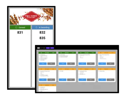 - Direct gekoppeld met kassa en keukenscherm